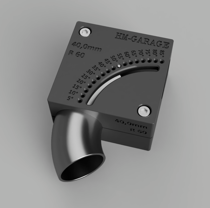 Die mittels 3D Druck hergestellte Vorrichtung ermöglicht das präzise Absägen eines Rohrbogens im korrekten Radius z.B. mit einer Bandsäge. Der Anschlag kann alle 5 Grad mithilfe eines 2mm-Schweißdrahts abgesteckt werden. Der Rohrbogen kann durch anziehen der verbauten Schrauben fixiert werden, daher eignet sich die Vorrichtung auch als Anzeichenhilfe. Beim Spannen im Schraubstock können die Schrauben auch weggelassen werden, da Führungen vorhanden sind. Es handelt sich um Schweißbogen nach DIN 2605 bzw. EN10253-4 oder DIN 11852, je nach Produktauswahl.